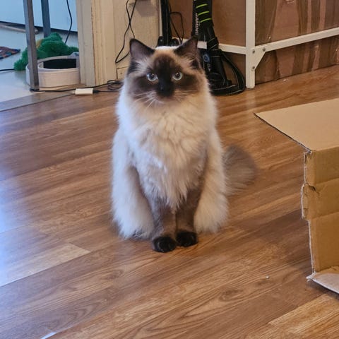 Här Är Aslan ! Våran fantastiska fina och högt älskade katt . En roligare katt kan man inte ha han är så Go och glad och mysig MEN han vill komma ut alt ha större yta att röra sig på . Han har inte stamtavla och är inte kastrerad då tanken va att han skulle få en kull med våran hona nästa år . Aslan är 7 månader och full av bus . Han är snäll att sköta på alla vis som borsta och duscha klippa klor men det går snabbt över till lek så man behöver träna lite mer med honom 😋 . Han är väluppfostrad och klöser inte på möbler eller markerar några revir . Han hoppar inte upp på bord ”när någon ser då ” han älskar barn och leker mer än gärna med dom . Vi har 5 barn .