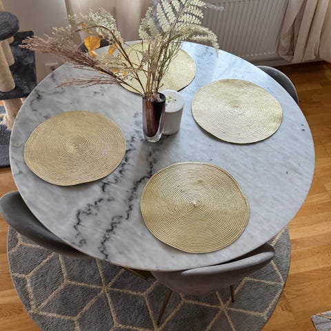 Robust och stabilt bord med 3 stolar. Inköpt på Mio för ca 20 år sedan.
