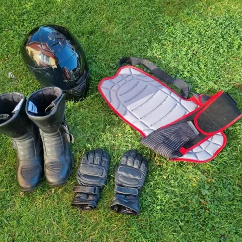 Mc kläder dam, jack, byxor, boots, hoodie med ryggplatta, hjälm, handskar, kevlar jeans, regnställ och lite mer