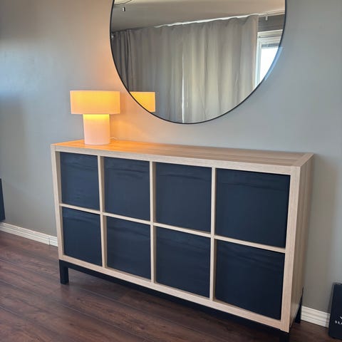Monterad men ny IKEA Kallax hylla med underrede.