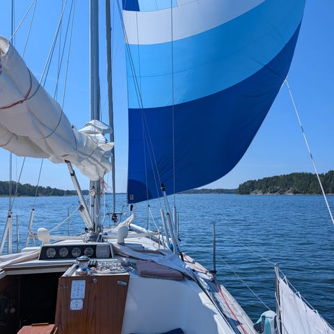 North Sails gennaker för båttyp Luffe 4004. Segeltyp CO_RF gennaker i dukvikten Maxikote 300P. Levereras i blå segelpåse med riggdetaljer och linor enligt bilder. Lämpligt som undanvindssegel anpassat för Luffe 4004 eller liknande båt med motsvarande riggmått.
