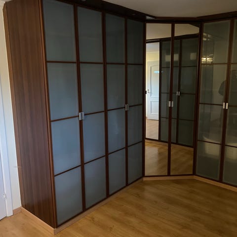 IKEA garderob med glasdörrar 100x236 cm trä och frostat glas