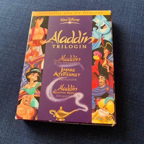 Disney DVD-filmer med fyra titlar: Aladdin, Jafars återkomst, Tiggers film och Musse Piggs magiska jul. Alla filmer är animerade familje- och barnfilmer på DVD-format. Lämpliga för barn och familj som vill se klassiska Disney-berättelser hemma på DVD-spelare.