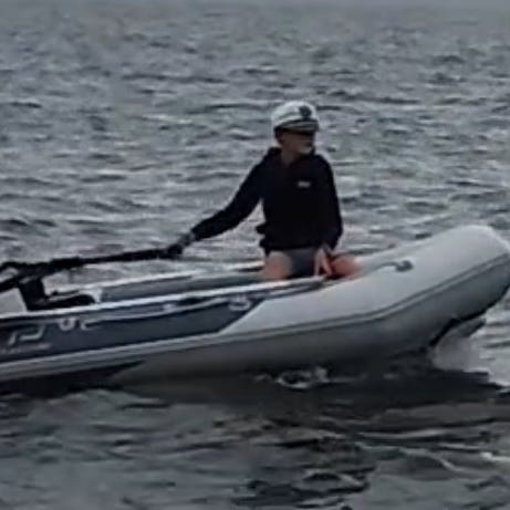 Kräver dock reparation då den släppt i limningen mellan ponton och botten. Se bild 2.