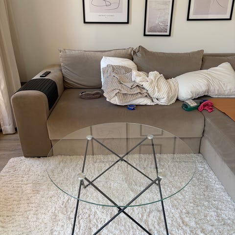 Soffbord med rökfärgad glasskiva.