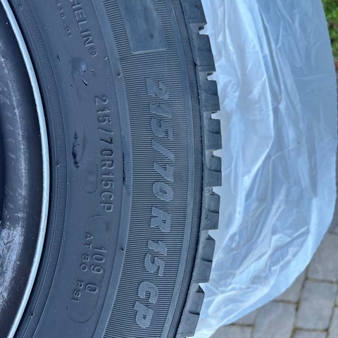 Hankook däck 215/70R15C monterade på stålfälgar. Däckdimensionen 215/70R15C är avsedd för lätta transportbilar,husbilar eller liknande fordon med C-klassade däck. Fälgarna är i stål med bultmönster anpassat för skåpbil,husbil eller lätt lastbil. Passar som kompletta hjul för fordon som använder denna dimension och typ av fälg. Kontrollera alltid fordonets specifikationer för att säkerställa kompatibilitet med dimension och bultmönster. 4 däck är helt nya och däck nr.5 är 7-8 mm.