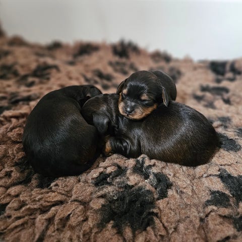 Hos mig växer valparna upp i hemmet, van vid andra hundar, katter o snälla barn, får vara ute lite o vänja sig vid alla ljud, rörelser o få naturligt att göra sina behov ute.. Så när de flyttar är de vana vid familjeliv o att få vara ute 😍