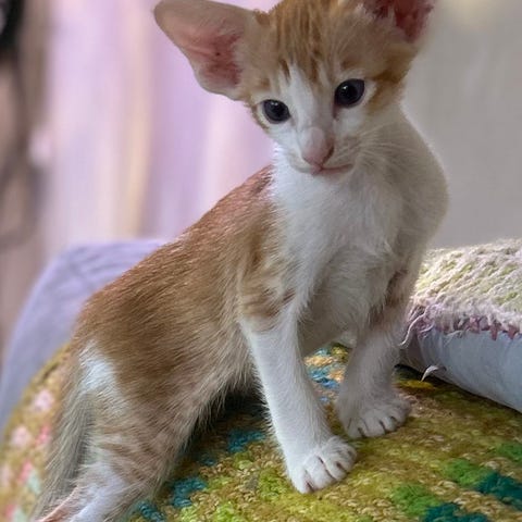 Mamman är en vacker 50% oriental (färgad siames) och 50% långhårig skeppskatt. Hon har inte stamtavla och därav inte ungarna heller.