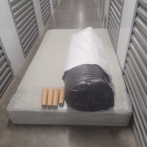 Som ny, knappt använd. Hade en extra madrass över. Utan gavel