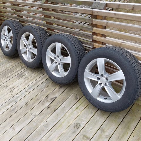 Sommardäck på fälg däcken är körda en halv sommar mycket kvar att slita på. Däcken heter champiro vp 1. Avhämtas.