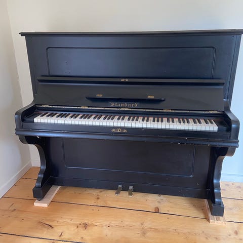Vacker möbel som inte längre spelas på i vårt hem. Bra skick, men en vit tangent ger inte ton. Svart pianopall medföljer. Finns i villa, inga trappor. Obs - rejält tungt.