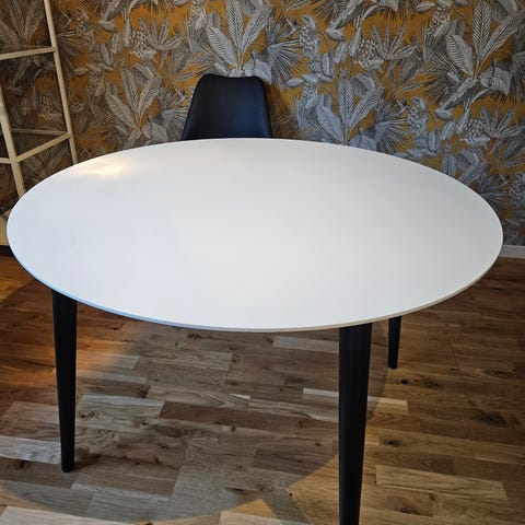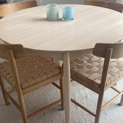Vårt fantastiska matbord får tyvärr inte plats i nya lägenheten och måste tyvärr säljas. Extra brett då vi valde att köpa till en planka när vi beställde bordet.