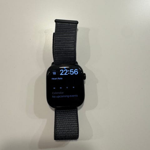 Apple Watch smartklocka i midnigth aluminium. Baksidan har sensorer för pulsmätning och laddningskontakt. Medföljer grönt textilarmband (inte aplles original) och svart silkonarmband med justerbar längd samt laddare. Originalförpackning saknas tyvärr. Passar för vardagsanvändning, aktivitetsmätning och notifieringar när den är ansluten till kompatibel iPhone. Batteriet håller en heldag + natt för sömntracking!