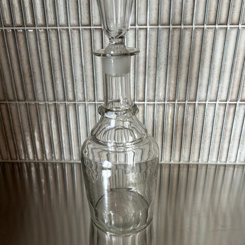 Glas, metall, rutmönster. Höjd 35,5cm.
