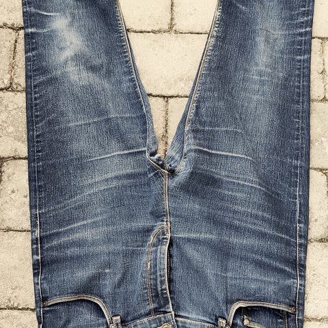 Levi's 501 herrjeans i blå denim. Midjemått W33 och uppskattad storlek L. Klassisk femficksmodell med knappgylf och raka ben. Tillverkade i denimtyg som ger ett robust och tidlöst uttryck, lämpliga för vardagsbruk.
