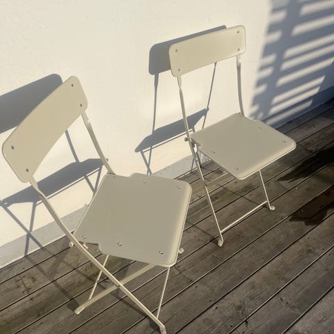 Två design stolar i vitlackerad metall. Priset för båda.