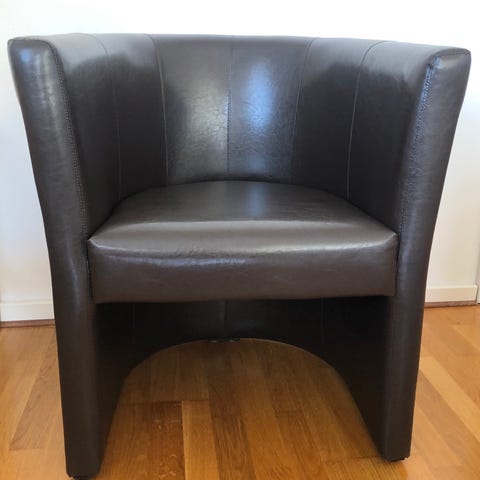 2 bruna härliga 50-talsfåtöljer (som ser lite grönaktiga ut på bild men det är de inte).