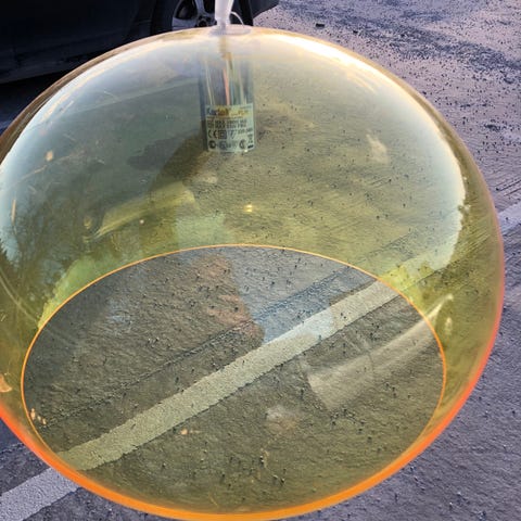 Lampan är säkert förpackad och omsluten av ett tjockt lager frigolit.