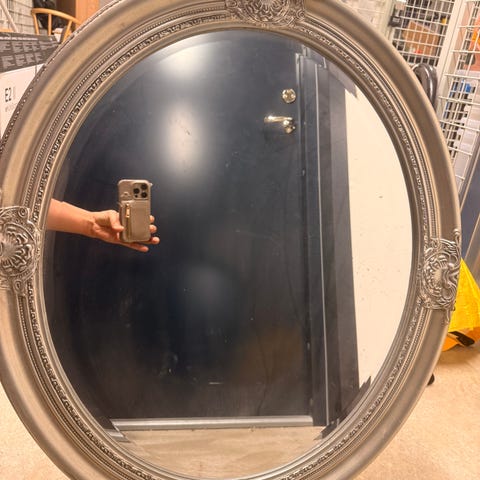 Mycket äldre sällsynt gjutjärn bord spegel med jätte fina detaljer. Riddare