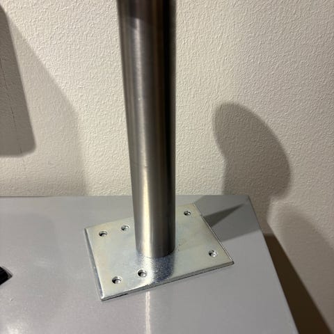 Bordsben i metall. 5 ben i liknande stil med triangelformade stag och monteringsplattor upptill eller nertill. Lämpliga för användning till bord, bänkar eller andra möbler där lösa ben kan monteras på en skiva eller stomme. Monteringshål finns i plattorna för fastsättning med skruv.