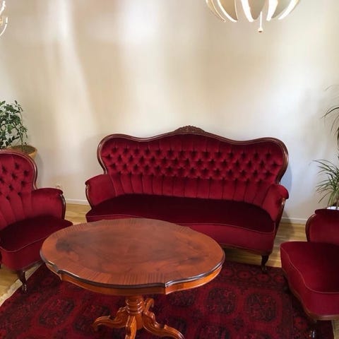 Sofforna är hela och stabila med normal användning. Fräscht hem utan rökning.
