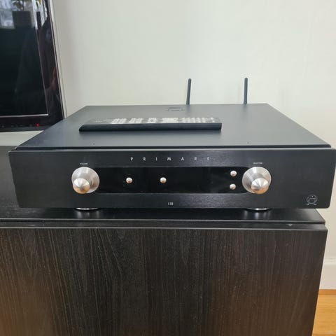 Saknar fjärrkontroll då jag har använt mobilen för höja sänka volymen. Kablage ingår.