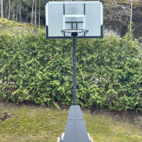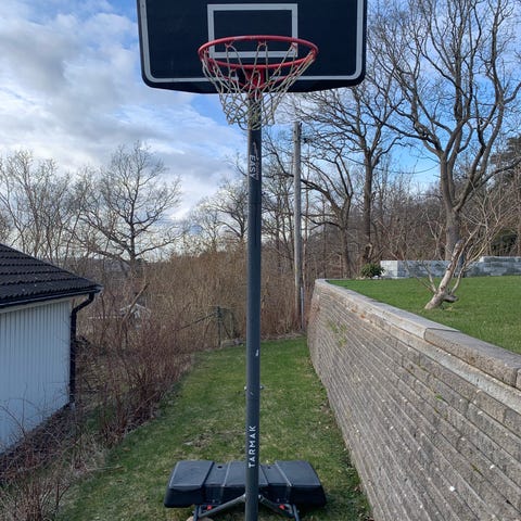 Tarmak basketställning för utomhusbruk. Fristående konstruktion med transparent basketplatta, korg med nät och stabil fot som kan fyllas med vatten eller sand. Utrustad med hjul för att kunna flyttas vid behov. Passar för spel på uppfart, gård eller trädgård. Justerbar höjd i fem steg mellan 220- 305 cm.