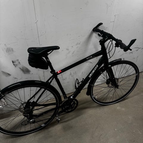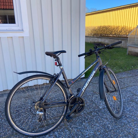 Nishiki hybridcykel för unisex med ramstorlek L och 28"/700c-hjul. Cykeln har rak styre, smal sadel och smala däck anpassade för pendling och vardagscykling på väg. Utrustad med växlar och fälgbromsar fram och bak. Färg: svart med ljusa detaljer. Passar för vuxen cyklist som önskar en hybridcykel för stadskörning och längre turer på asfalt och lättare grusvägar.