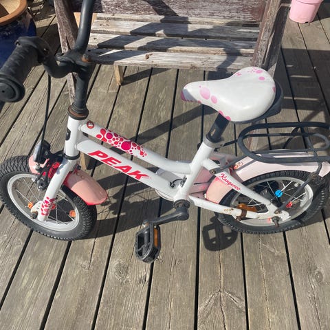 Barncykel med 12" hjul i lila färg. Utrustad med kedjeskydd, skärmar fram och bak, fotbroms bak samt ringklocka och reflexer. Passar utmärkt till yngre barn som ska lära sig cykla.