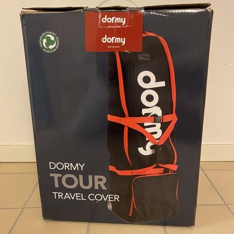 Dormy resefodral för golfbag med hjul. Fodralet är tillverkat i slitstark nylon med vaddering och har flera dragkedjefack. Utrustat med hjul för enklare transport av golfutrustning vid resor. Färg svart med röda och vita detaljer.