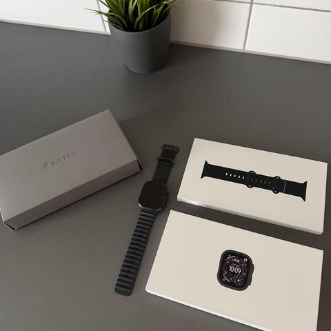 Säljer en Apple Watch Ultra 2 (2:a generation) GPS+Cellular i svart titanium, i nyskick. Klockan har alltid använts med a skyddarmband och är helt fritt från repor och skador. Batterihälsan är 99%.