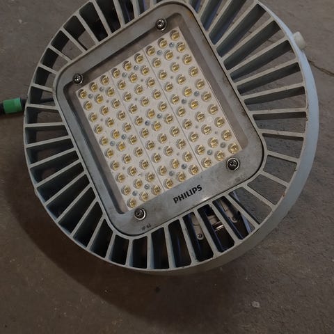 Lämplig som belysning för exempelvis fasader, gårdar, parkeringar eller liknande ytor där ett kraftigt och riktat ljus behövs. Finns 10 stycken. 300kr styck eller 2000kr för alla 10. Sökord: gatubelysning, armaturer, utebelysning.