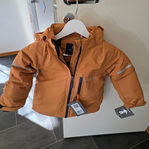 Nypris 1100 :- Helt ny,aldrig använd Didriksons jacka för barn i storlek 104, unisexmodell. Jackan är rostbrun och har avtagbar huva. Stor i stl.storlek 104. Materialet är anpassat för utomhusbruk och jackan har detaljer som reflex på ärmen för ökad synlighet.