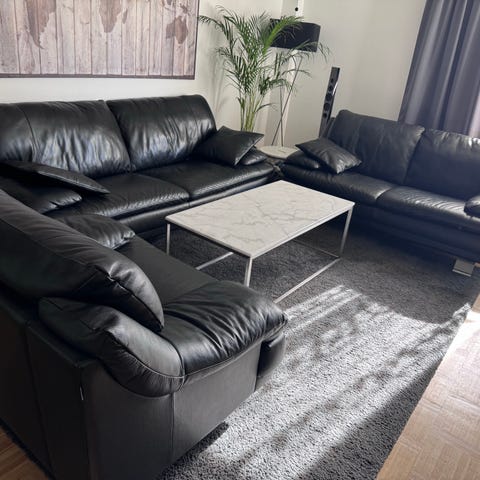Soffgrupp med marmordetaljer och utdragbara sidobord beige