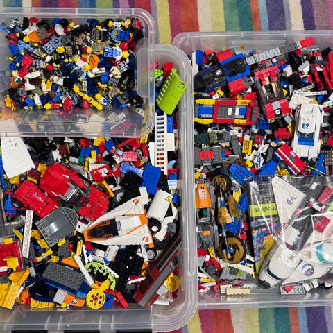 LEGO blandade klossar och basplattor. 34 kg. Innehåller flera lådor med lösa LEGO-bitar i olika färger och storlekar samt flera väg- och byggplattor. Passar för fritt byggande, komplettering av befintliga LEGO-samlingar eller reservdelar. Polisstation, Starwars, bilar, Minecraft, olika hus m.m. Även lite lego technic.