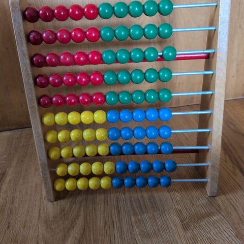 Kulram i trä från IKEA i mycket fint skick. Den kan användas för att öva finmotorik, färgigenkänning och enkel räkning för mindre barn. Smidig att förvara då den går att fälla ihop.