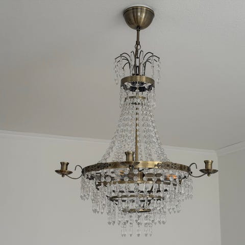 Vacker kristallkrona i vintage-stil – mässing & prismor