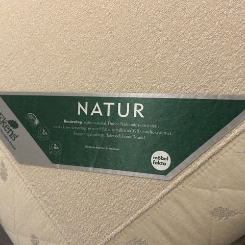 &Tradition säng med bäddmadrass i rutigt tyg. Sängen har en övermadrass med grön. Passar som enkel säng i sovrum eller gästrum. madrassen är avsedd för en person. Designen är neutral och fungerar i många typer av inredningar , Det finns en fläck på bakom av madress , med syns inte. Jätte bra kvalitet & fast