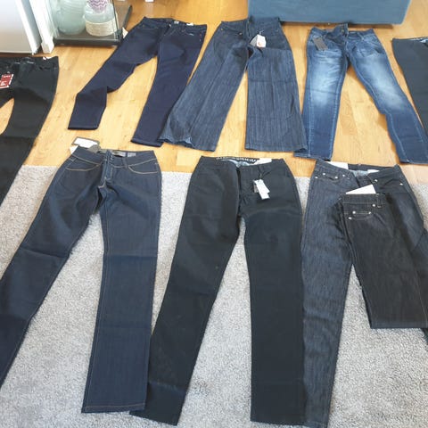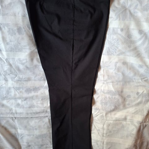 bonprix byxor för dam i storlek L med midjemått W42. Byxorna är blå och tillverkade i polyester. Passar som vardagsbyxor eller jeansliknande byxor för dagligt bruk.är inte säker