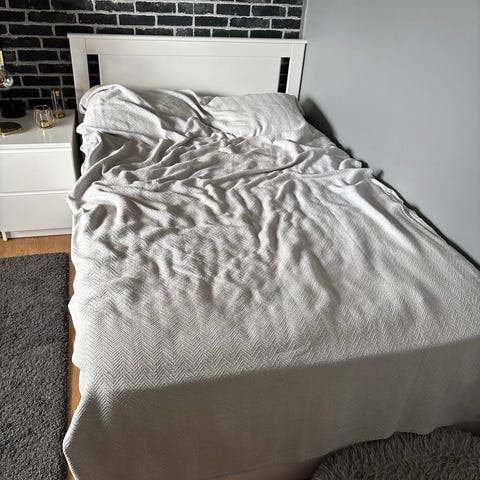 IKEA enkelsäng. Sängen är avsedd för en person och passar bra i sovrum, gästrum eller barnrum. Standardmått för enkelsäng från IKEA (exakta mått kan kontrolleras mot modellbeteckning undertill på sängen). Levereras med sängstomme och ribbotten om inget annat anges i annonsen. Madrass och sängkläder enligt bild kan ingå eller säljas separat beroende på säljarens uppgift i annonsen.