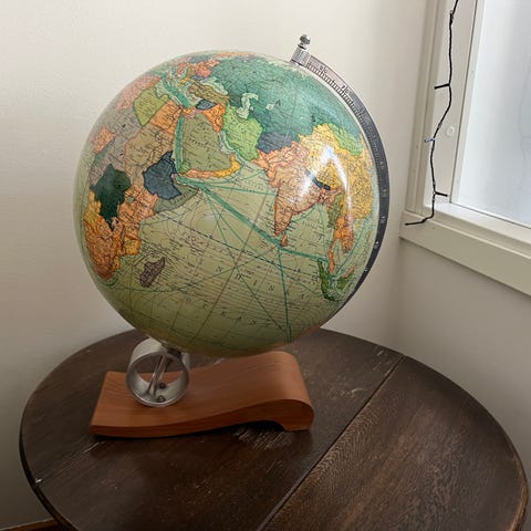 Säljer vår fina jordglob med lampa och "fantasy-detaljer".