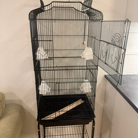 Säljer en mycket fin fågelbur med tillbehör. Buren är använd i mindre än ett år så den är i väldigt fint skick, monterad och klar för nästa fågel. Buren har hjul och är smidig att flytta eller låsa fast där man vill ha den.