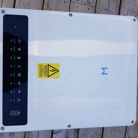 Växelriktaren är bara använd i 2 år och har fungerat felfritt. Perfekt för dig som vill köra med solceller. Trådlöst nätverk (Wifi) samt Ethernet finns på växelriktaren. Styr växelriktaren via app (se exempelbild), även kompatibelt med t.ex. Home Assistant (HASS) via modbus. Se manualen för mer info.