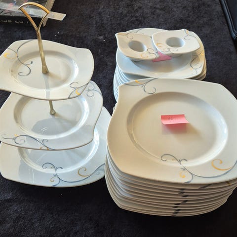 Jag säljer här en konvolut av frukost servisdelar från fyrklövern, christineholm, Design Studio, från serien Solvik. Olika delar har olika ålder och bruksskick. Lock till dem tre kaffekannor är speciellt för varje enskild kanna, vill säga att dem ej passar på vilken kaffekanna som helst. Servisdelar är i keramik och väldig fin nu till våren. Konvolut består av
