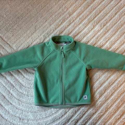 Polarn O. Pyret jacka för barn i storlek 86, unisexmodell. Jackan är grå och tillverkad i polyester med mjukt, fleece-liknande foder på insidan. Modellen har huva, framfickor med knappar, resår i ärmslut samt reflexdetaljer. Passar som ytterjacka för mindre barn i vardag och utelek.