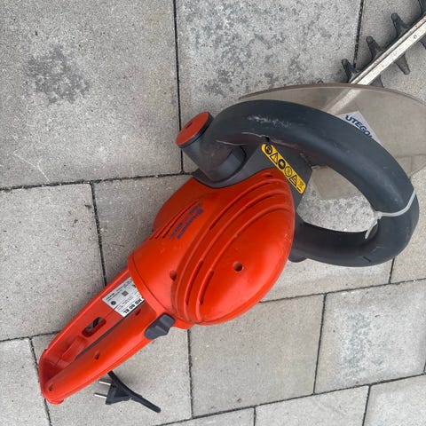 Flymo HT 420 häcksax med eldrift. Modellen har orange plastkåpa och är avsedd för trimning och klippning av häckar och buskar i trädgård. Häcksaxen har svärd med skyddskåpa och ansluts med sladd till eluttag. Lämplig för hemmabruk i trädgårdsmiljöer där man vill klippa mindre till medelstora häckar och buskar.