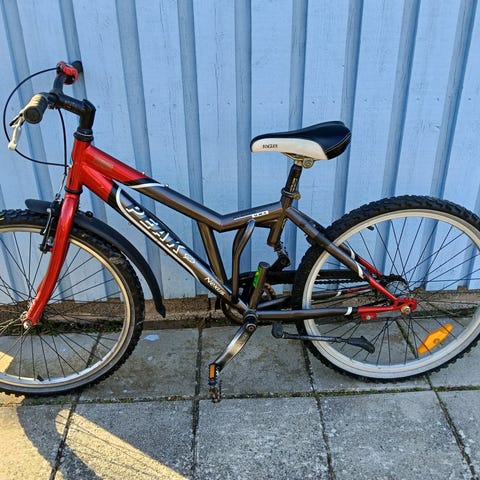Tiger barncykel med 24" hjul i silver och blått. Cykeln har framgaffel med dämpning, handbromsar och växlar bak. Utrustad med pakethållare bak och reflexer. Passar barn som behöver en något större cykel för vardagscykling och fritidsaktiviteter. Nya däck .