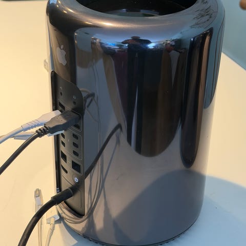 Routerna har flera nätverksportar på baksidan för anslutning av trådbundna enheter samt anslutning för ström. Modellen är utformad som en stående cylindrisk enhet med indikatorlampor på framsidan.