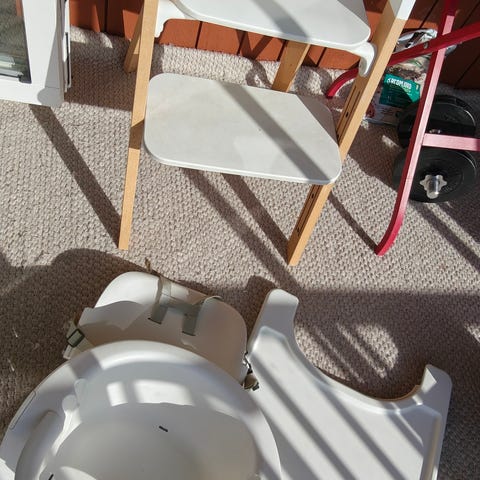 Allt du behöver i ett paket: barnmatstol, bricka och sele.