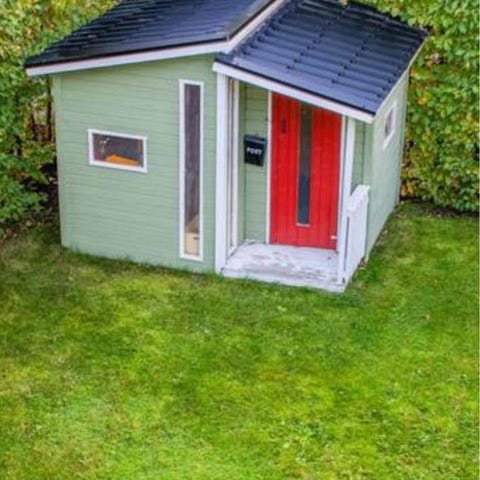 Lekstuga i funkisstil. Gjord av OSB skivor. Rejäl träregelstomme, takpapp samt plåtdetaljer. Stugan har två våningar. Passar som lekstuga eller mindre förråd i trädgård.